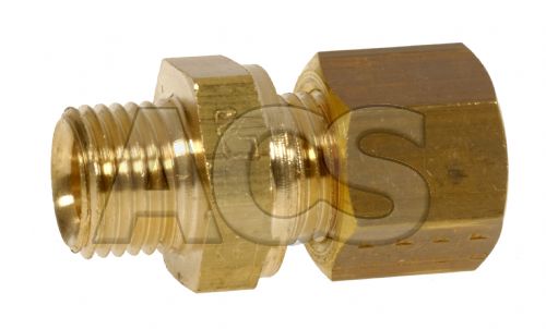 Legris brass compression fitting with male metric threads and suitable for metric outside diameter tube.
