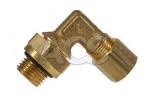 Legris brass compression swivel elbow fitting with male BSP parallel threads and suitable for metric outside diameter tube.