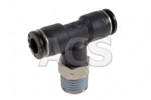 Push in fitting branch tee available with male NPT threads and suitable for imperial outside diameter hose. The body is orientable for positioning purposes, when piping in a confined space.